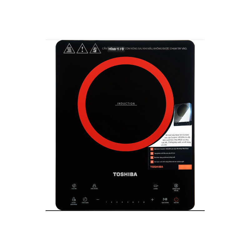 - Bếp điện từ đơn gọn đẹp, có 1 vùng nấu đặt được trên bàn ăn