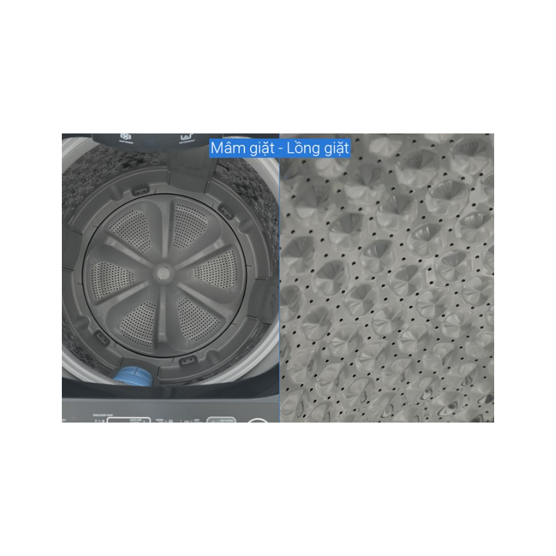 - Đặc biệt, lồng giặt được thiết kế có các gờ hình ngôi sao pha lê để các lỗ nhỏ dẫn nước len lỏi vào lồng giặt nhằm tác động lên quần áo, nhờ đó tăng 5% hiệu quả giặt sạch và lưu trữ hương thơm lâu dài.