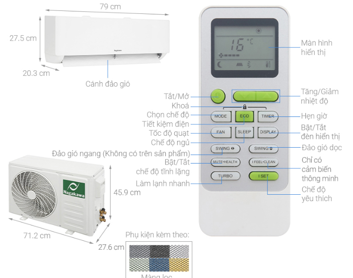 - Chế độ cài đặt yêu thích I-set: Máy lạnh Nagakawa Inverter này có khả năng ghi nhớ cài đặt yêu thích của người sử dụng, từ đó giảm bớt thao tác và thời gian cài đặt máy lạnh mỗi khi dùng.