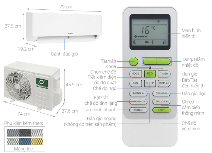 - Máy lạnh Nagakawa sở hữu gam màu trắng sang trọng, tinh tế, phù hợp với hầu hết không gian nội thất trong gia đình.