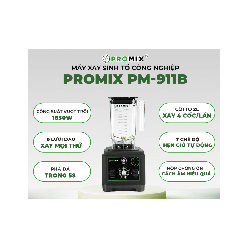 Thấu hiểu nhu cầu khách hàng về một chiếc máy xay công nghiệp giá thành rẻ, công suất lớn với những tính năng vượt trội, Promix 911B chính là giải pháp ưu việt với sức mạnh và tốc độ của mình, đảm bảo đem tới trải nghiệm tuyệt vời mà không dòng máy xay nào đem lại được.